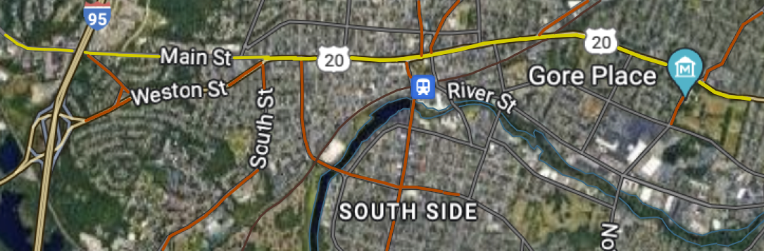 To get to Main Street from the west, take North Avenue (Rt. 117) from Weston,or come from Weston Street (Rt. 20) through the I95 exit. A left from Weston Street onto Stowe Streetconnects to Main Street, or you can continue to the end of Weston Road to Banks Square at theintersection with South Street. Take a right on ProspectStreet to cross the river and get to Moody Street and the South Side. Pass the post office onthe right, and the library on the left to get to Moody Street and City Hall Plaza. Lexington Streetstarts to the north at City Hall, followed by Church Street. Take a left onto Waverley Oaks roadto reach the Warrendale neighborhood, or cross over the railroad tracks and see the GroveHill cemetary on the right side. A right turn takes you to the Gore Estate, and a left brings youto Warrendale. Main Street ends continues as Rt. 20 in Watertown.