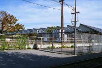 The entrance retains the roofline from the Metz factory which originally occupied the site.