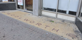 This address, now occupied by the Family Dollars store, was Woolworths until the chain closed in 1997. You could eat at the lunch counter. The Woolworth name is still visible at the entrance to the store. |